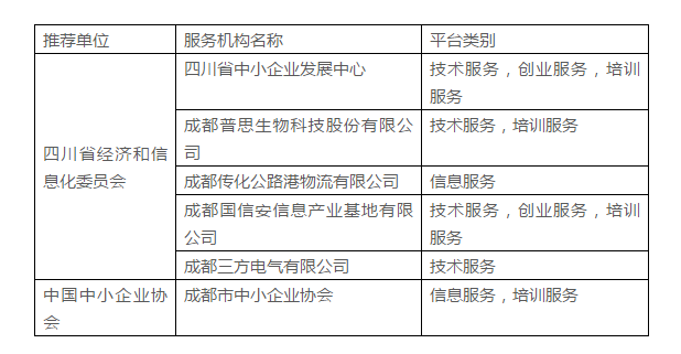 2017年度國家中小企業(yè)公共服務示范平臺名單