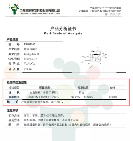 普思生物除了銀杏內(nèi)酯A、B、C、J和白果內(nèi)酯等銀杏葉天然活性成分,還有白果黃素、白果新酸、槲皮素、銀杏酚酸、銀杏雙黃酮等活性物質(zhì)。如果有需要,都可以在微信商城查到哦,當然,我們的官網(wǎng)也是能夠檢索到的。