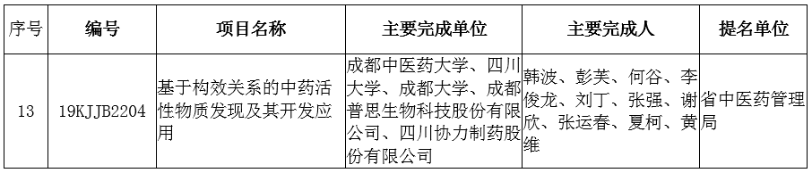 [評(píng)獎(jiǎng)公示]“基于構(gòu)效關(guān)系的中藥活性物質(zhì)發(fā)現(xiàn)及其開(kāi)發(fā)應(yīng)用”項(xiàng)目獲四川省科技進(jìn)步一等獎(jiǎng)公示