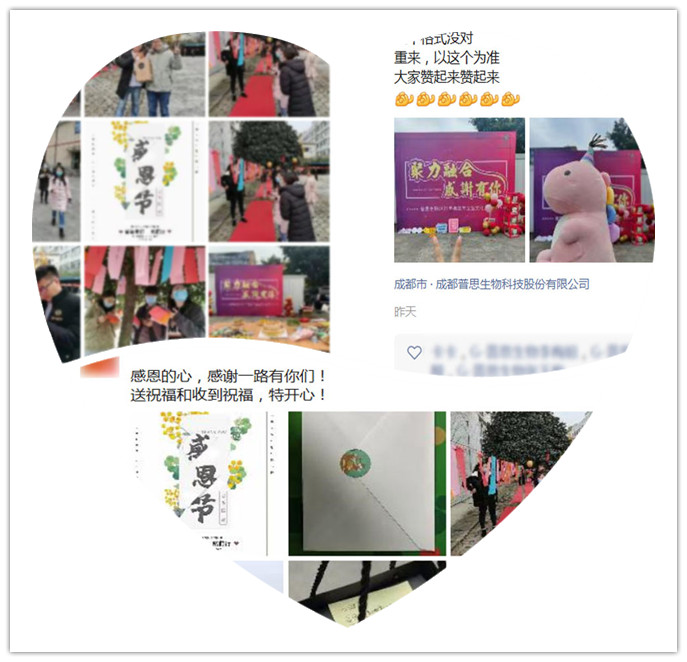 按要求發(fā)送主題“感恩的心,感謝有你”的朋友圈進(jìn)行集贊,排名前10將獲獎(jiǎng)同事將獲得精美禮品一份。朋友圈集贊活動(dòng)不僅是為了獲得精美禮品,更是感恩同事,朋友,家人的默默付出。