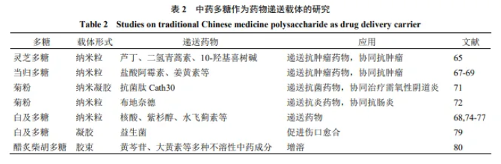 中藥多糖具有生物可降解性、高安全性和生物相容性等特點,表現(xiàn)出免疫調(diào)節(jié)、抗炎、抗氧化、抗腫瘤等生物活性。從結(jié)構(gòu)上看,中藥多糖由不同長度的糖鏈及其支鏈組成,糖鏈中含有大量的羥基、羧基、醛基等親水基團,因此可以通過將疏水基團綴合到多糖分子上,合成兩親性聚合物,從而使其自發(fā)聚集成膠束。此外,多糖也可以通過化學(xué)或物理交聯(lián)形成水凝膠。不同于均一性分子形成的水凝膠,多糖形成的水凝膠具有不同尺度的有序結(jié)構(gòu),因此具有優(yōu)異的性能,在材料科學(xué)中具有廣闊的應(yīng)用前景。
